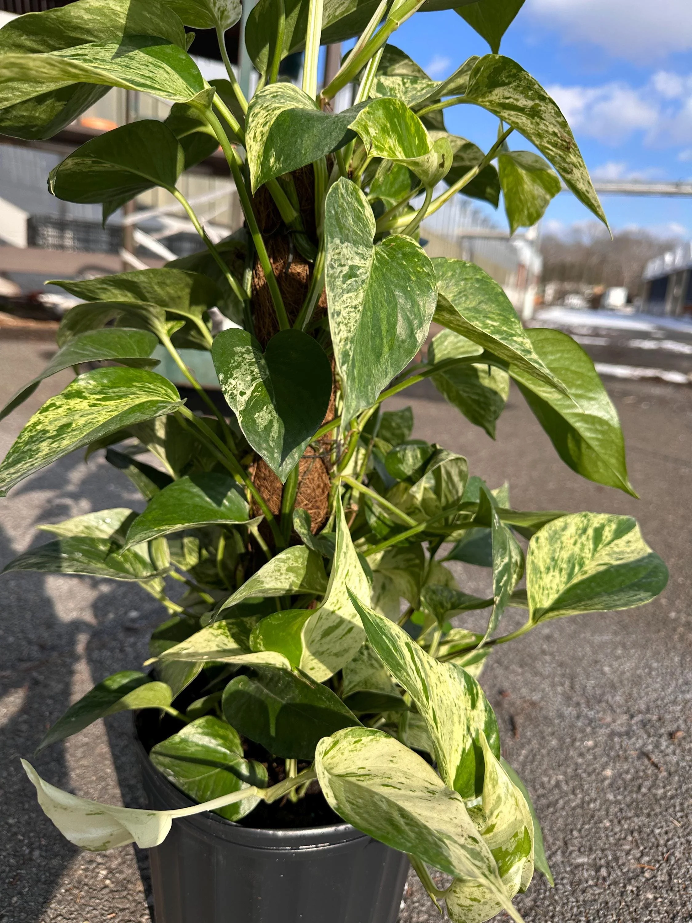 The Pothos Marble Queen is a stunning variegated tropical indoor plant known for its creamy white and green foliage and fast, climbing growth habit. This plant comes established on a totem/moss pole, encouraging upright growth and fuller leaves over time. A great choice for living rooms, offices, and plant walls. Perfect for beginners and collectors looking for a low-maintenance houseplant that makes a bold visual impact. Plant Details: • Pot Size: 10” growers pot • Growth Habit: Climbing on totem/moss pole • Light: Bright indirect light (tolerates lower light) • Water: Water when top 2–3” of soil is dry • Humidity: Average to high humidity appreciated • Pet Safety: Not pet safe if ingested Each plant is unique and may vary slightly in appearance. Ships with care and insulation when needed.