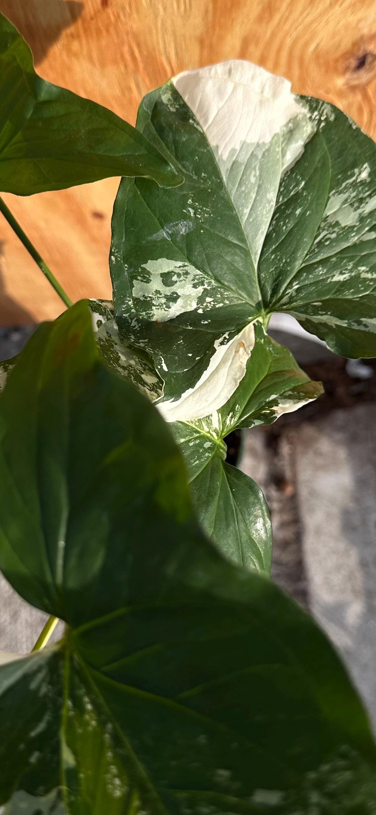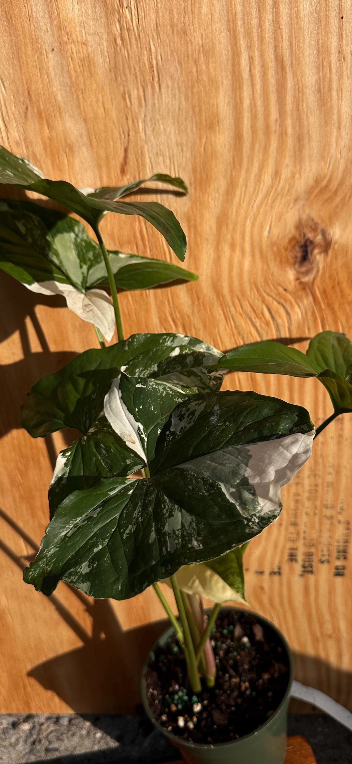 A collector favorite — the Syngonium Albo Variegated features beautiful white and cream marbled leaves with arrow-shaped growth that brings elegance to any plant space. This variegated aroid is fast growing under the right conditions and rewards you with stunning new leaves that unfurl uniquely every time. Perfect for aroid lovers, collectors, or anyone looking for a striking statement plant.