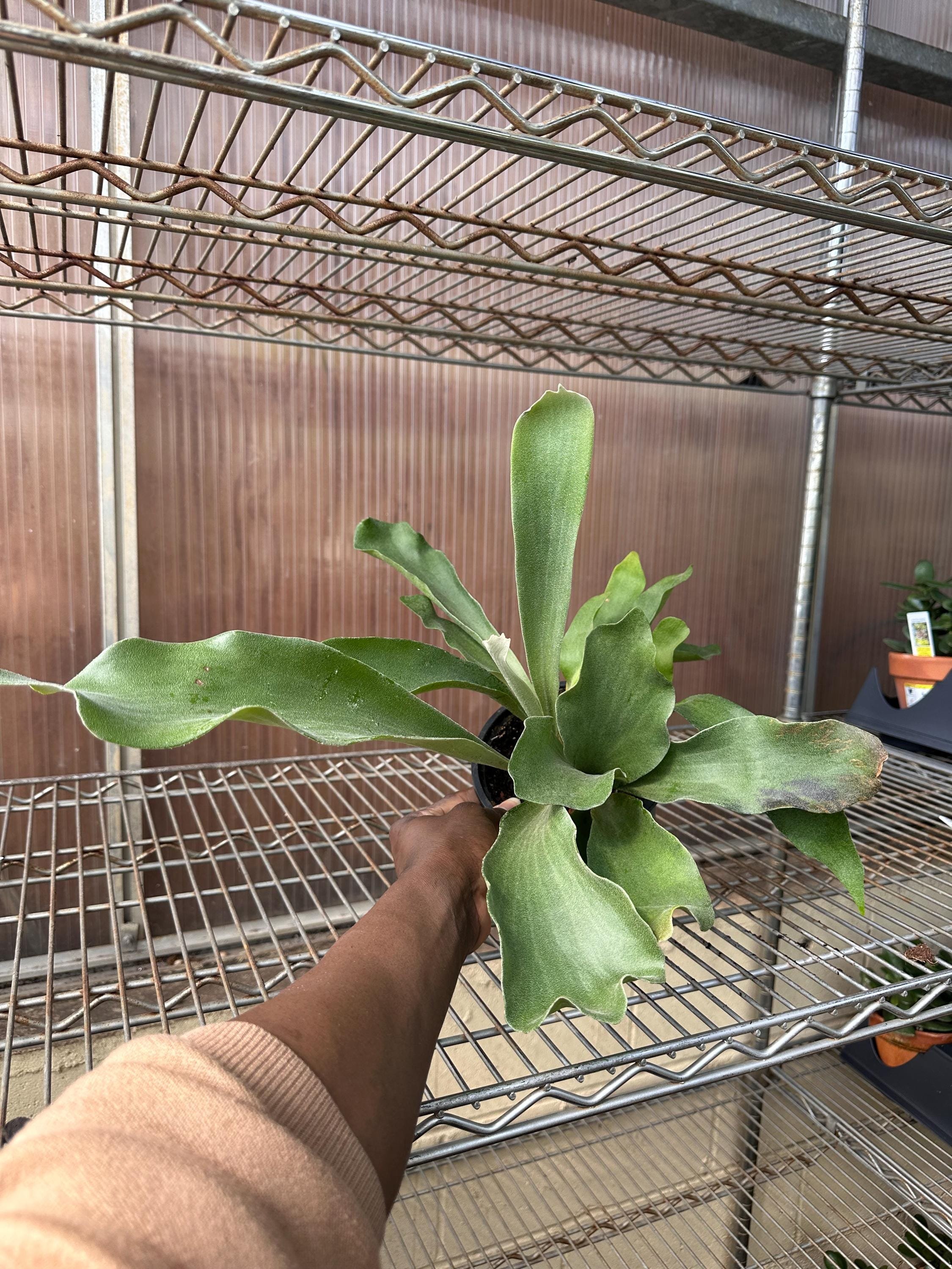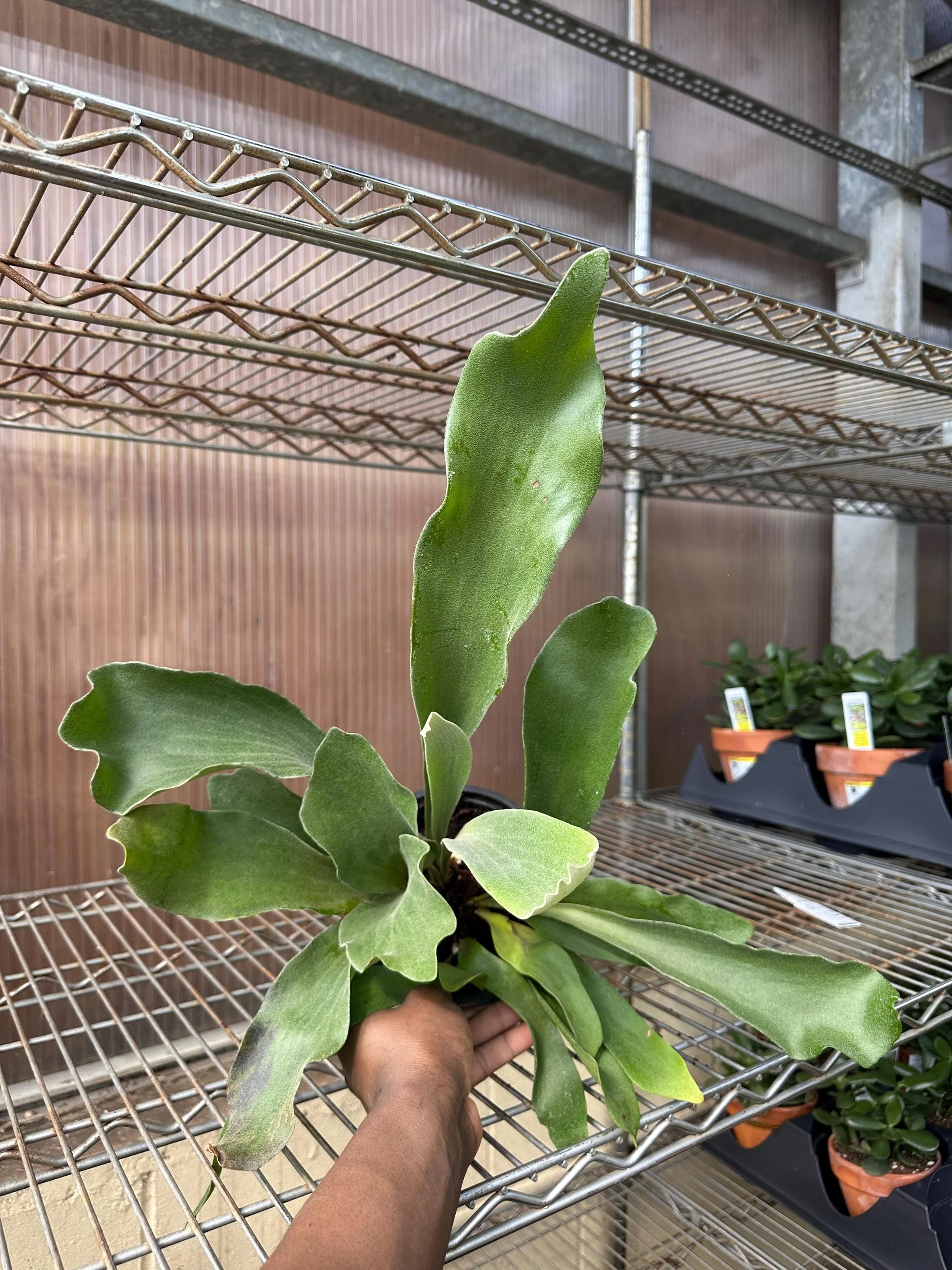 Bring unique, lush greenery into your home with a healthy 6” Staghorn Fern. This tropical fern is admired for its dramatic, sculptural fronds and low-maintenance care, making it perfect for apartments, offices, and plant beginners. Mounted or potted, it adds a natural statement to any space—whether on a wall, shelf, or tabletop. 🌿 6” nursery pot or mounted option ☀️ Bright, indirect light – thrives indoors without direct sun 💧 Water when soil is slightly dry; mist fronds regularly 📦 Carefully packaged for safe shipping 📍 Local pickup available in Bed-Stuy, Brooklyn Why You’ll Love It: Unique wall or table accent Easy to care for tropical plant Perfect gift for plant lovers or beginner gardeners