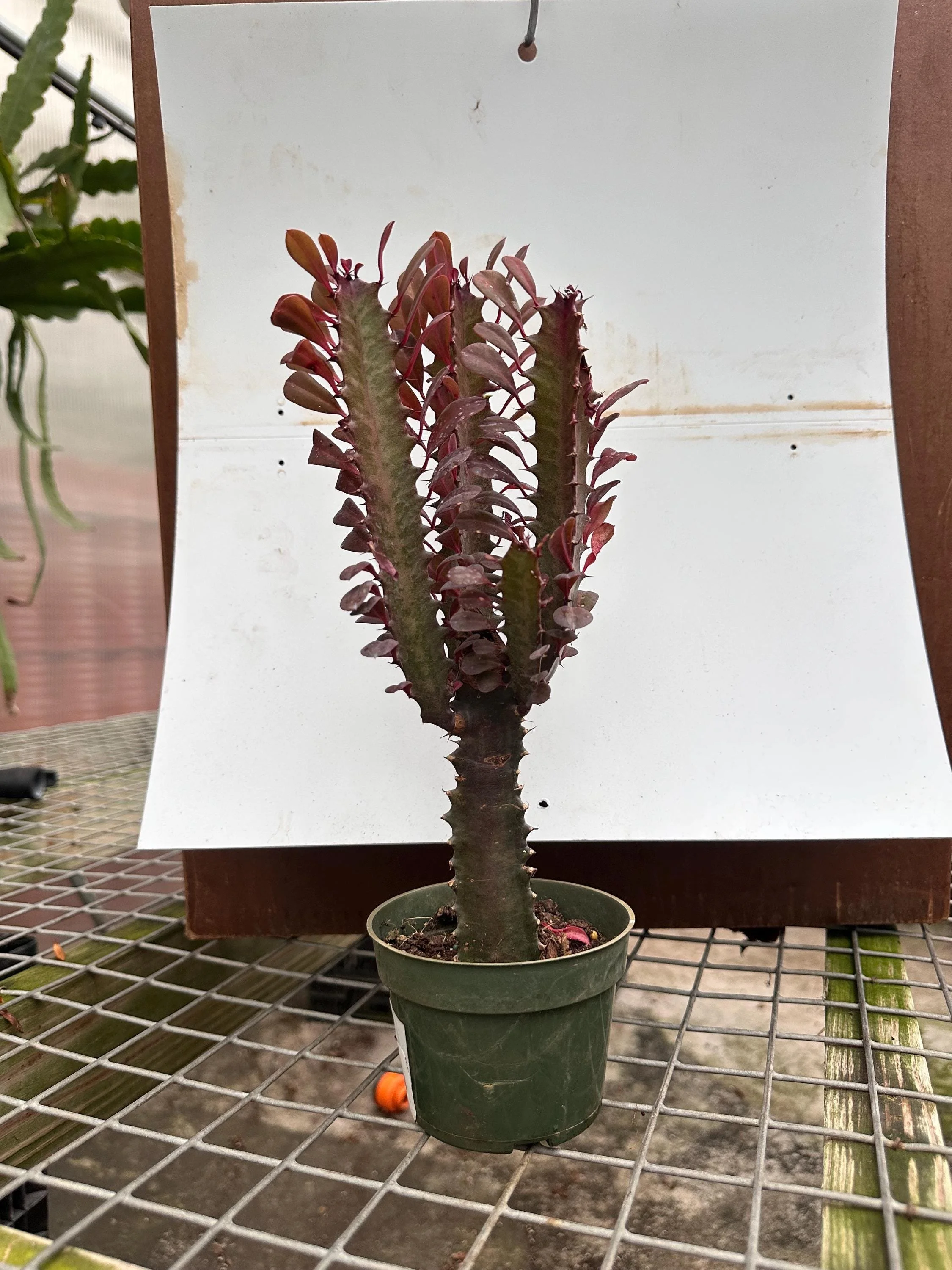 This Euphorbia Trigona Red comes healthy and rooted in a 4” pot 🌱 Loved for its upright growth and red-tinted stems, it’s a bold, low-maintenance plant that thrives in bright light and adds structure to any space. Plant details: Pot size: 4” Light: Bright indirect to direct light Water: Allow soil to dry between waterings Growth: Upright Sap is toxic if ingested and may irritate skin—handle with care and keep away from pets and children. Each plant is unique in color and form. 🌱 I also offer plant consultation services if you need help with care or placement. 🔗 Learn more: isholaalli.com 📸 Follow along: @ishyplants