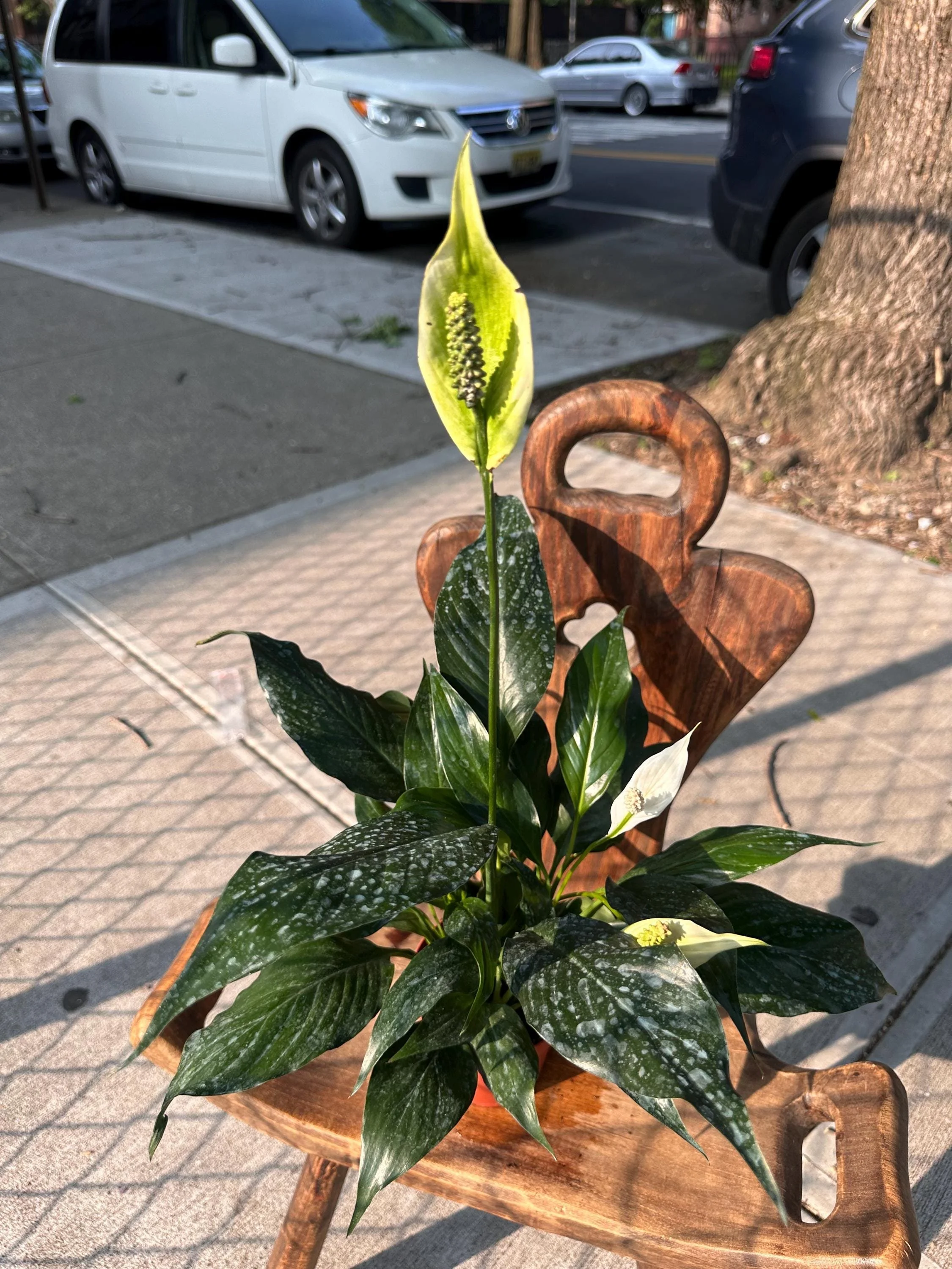 Unlike the traditional green Peace Lily, this rare variegated form has a unique marbled texture that makes every leaf one-of-a-kind. It’s perfect for plant lovers who want something easy to care for yet visually striking.